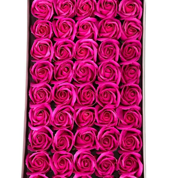 Pack 50 Unidades Rosas decorativas de jabón. Medida: 6 cm alto x 5 cm ancho Variedad en colores de las rosas El pack se vende unicolor